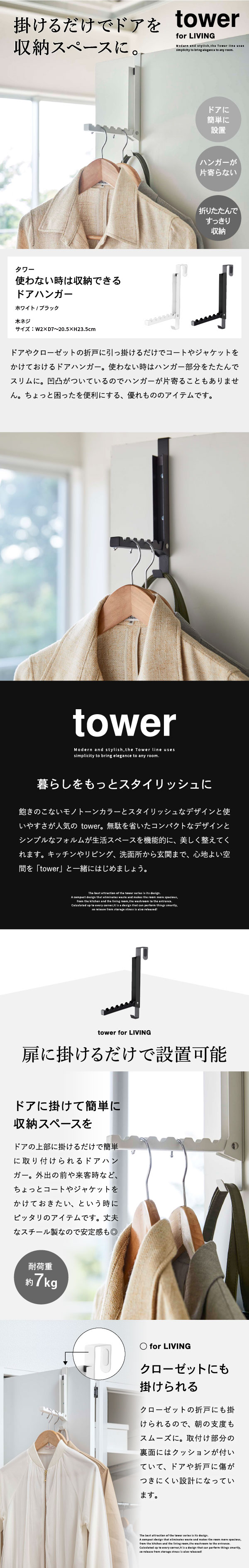 使わない時は収納できるドアハンガー タワー 山崎実業 tower ホワイト/ブラック 5514 5515 タワーシリーズ