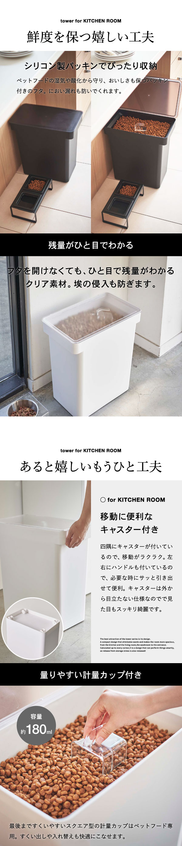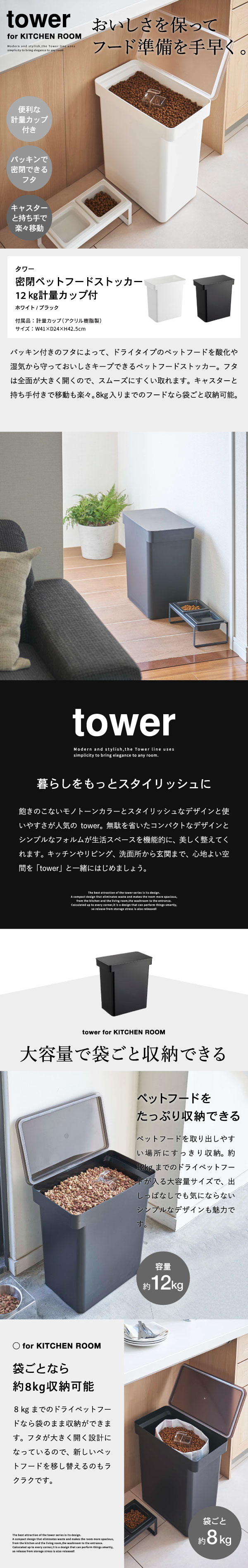 密閉ペットフードストッカー タワー 12kg 計量カップ付 山崎実業 tower ホワイト/ブラック 5617 5618 タワーシリーズ