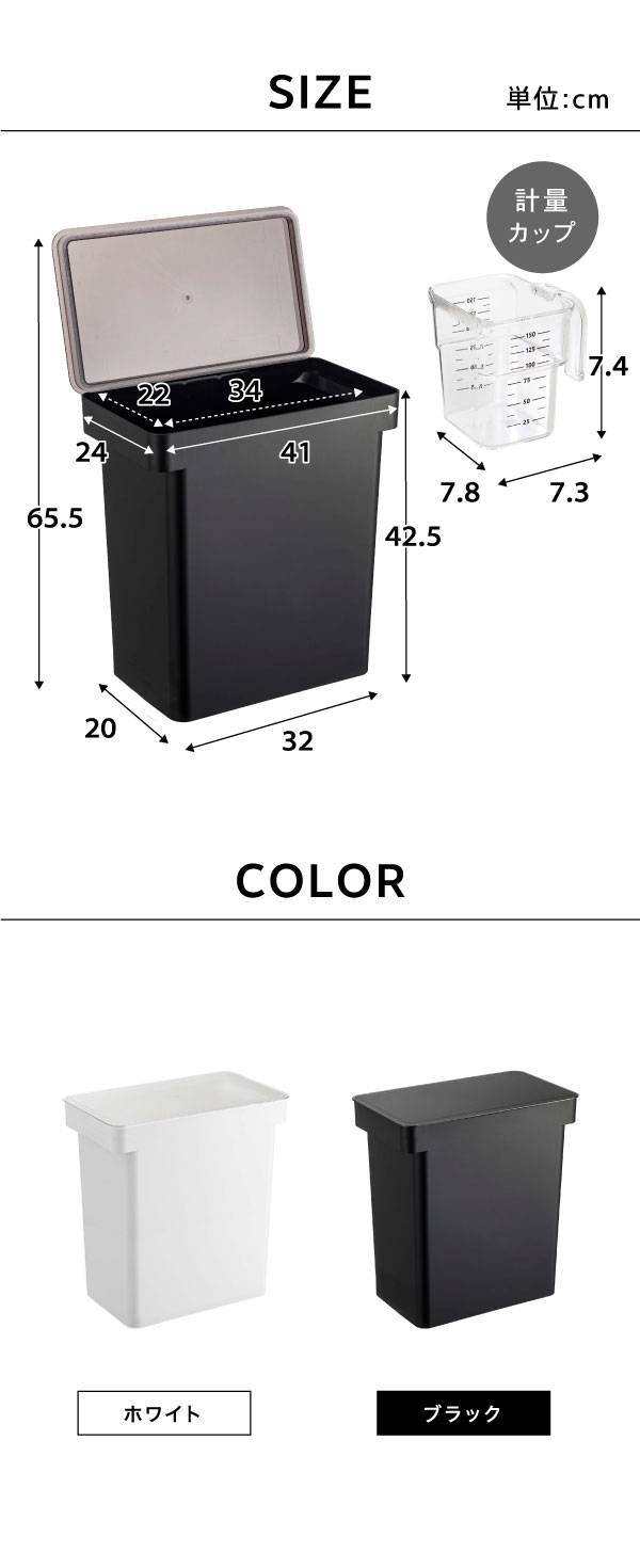 ●商品サイズ:約41X24X42.5[蓋開口時:H65.5](本体)cm、約7.8X7.3X7.4(計量カップ)cm