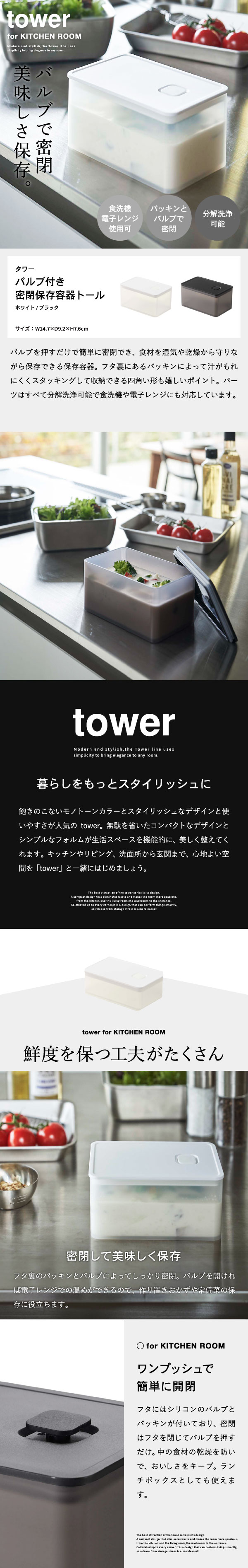 バルブ付き密閉保存容器 タワー トール