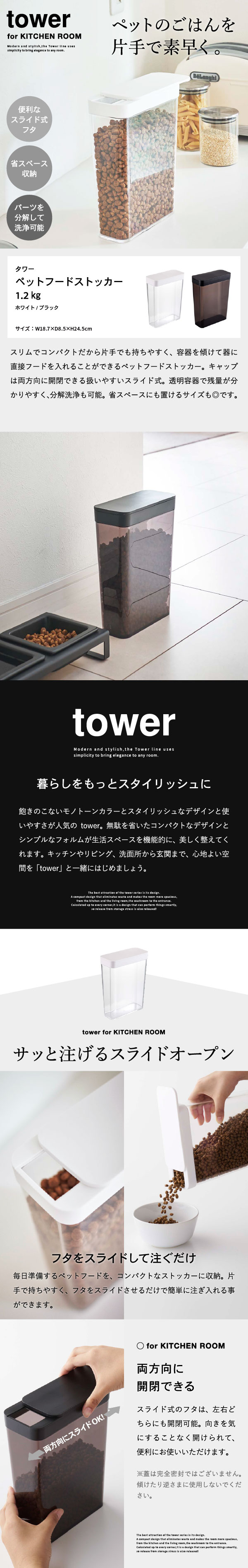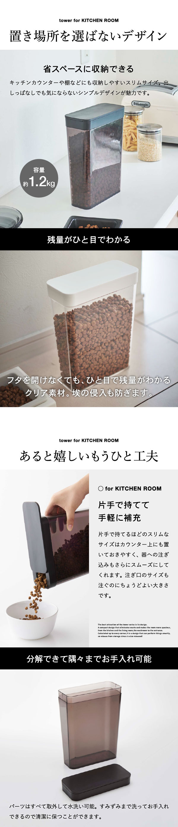 ペットフードストッカー タワー 1.2kg 山崎実業 tower ホワイト/ブラック 5607 5608 タワーシリーズ