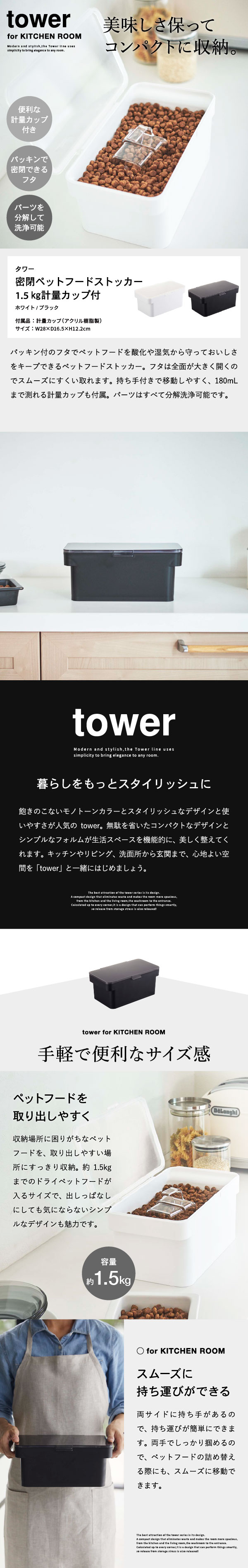 密閉ペットフードストッカー タワー 1.5kg 計量カップ付