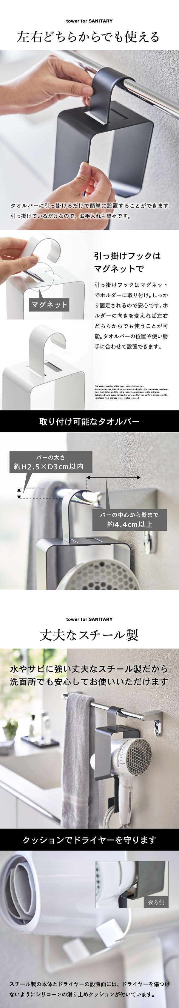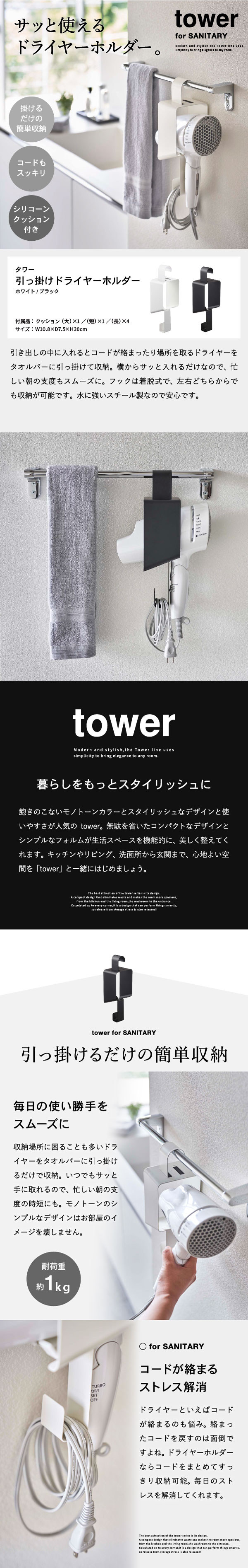 引っ掛けドライヤーホルダー タワー