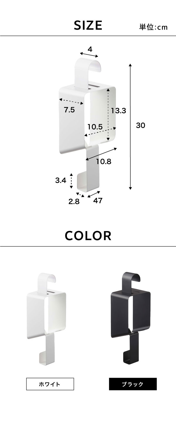 ●素材・材質: ホルダー・フック:スチール(粉体塗装) 滑り止め:シリコーン マグネット