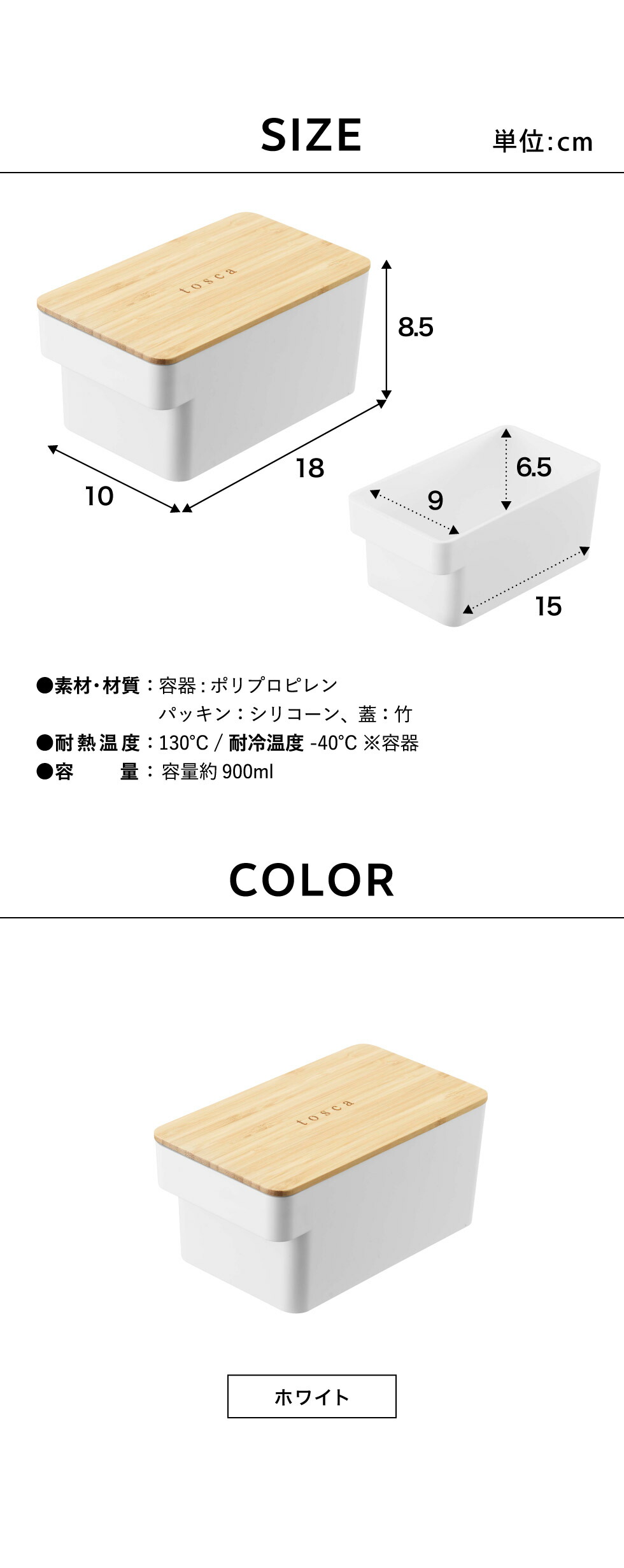 ●素材・材質: 容器:ポリプロピレン 蓋:竹 パッキン:シリコーン
