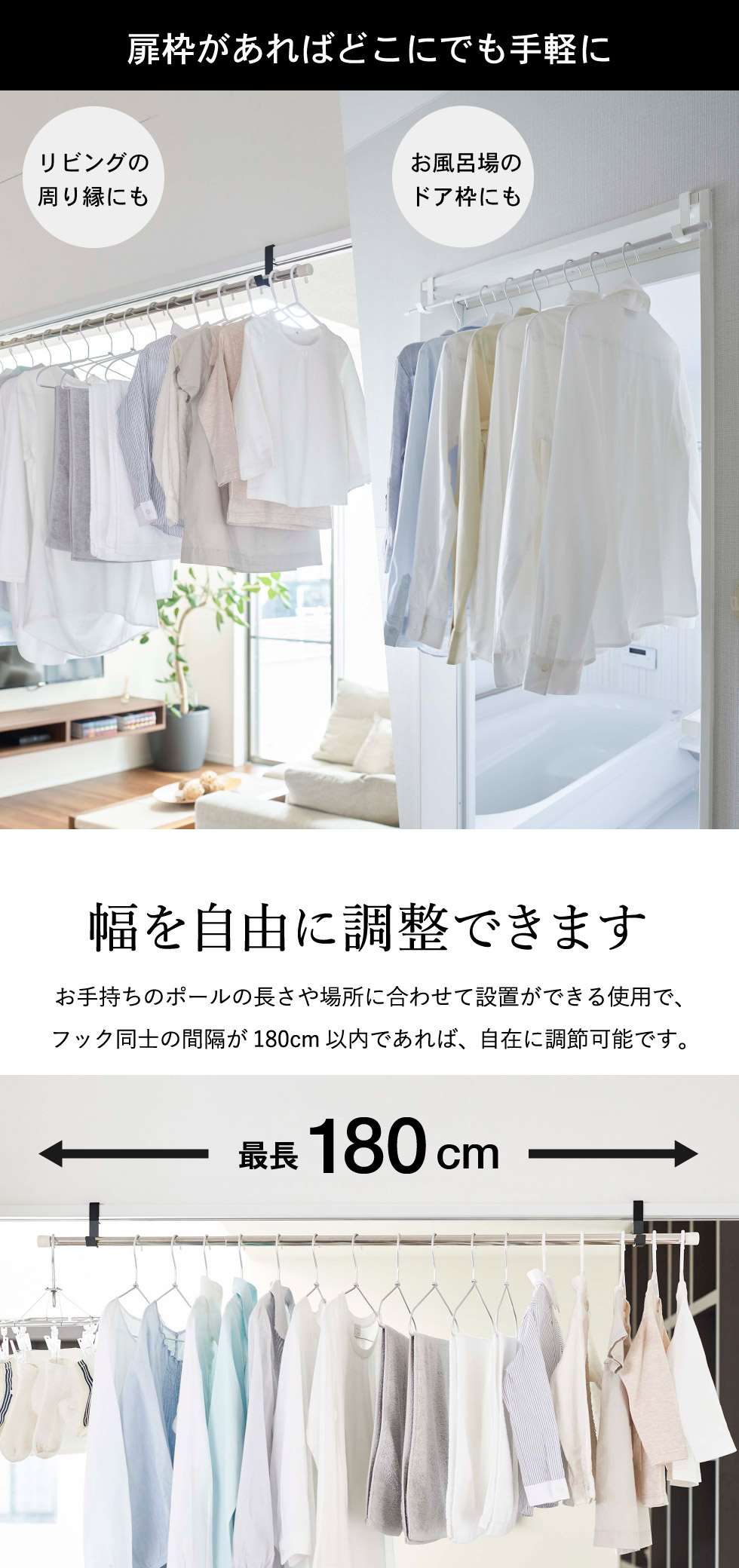 ●対応サイズ:ポールの直径:約3cm以内・幅180cm以内のものを目安としています。枠の幅:幅約180cm以内 (1)枠の厚さ:約1.5cm~3cm (2)枠上部の奥行き:約1cm以上 (3)枠下部の奥行き:約1.5cm以上