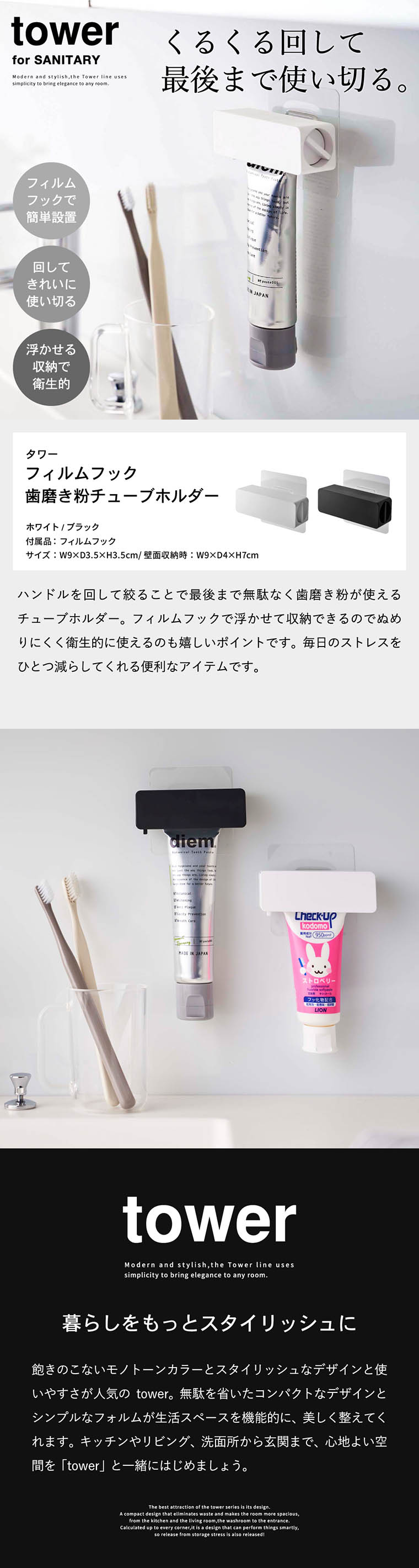 | ≫/ 【1】TOWER フィルムフック 歯磨き粉チューブホルダー |