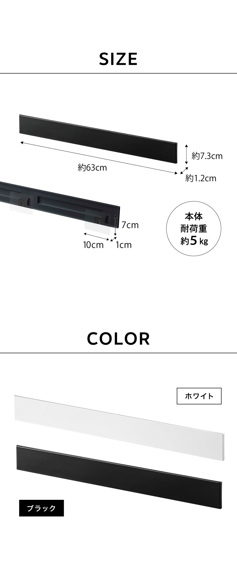 ●耐荷重:本体:約5kg フック1つあたり:約250g