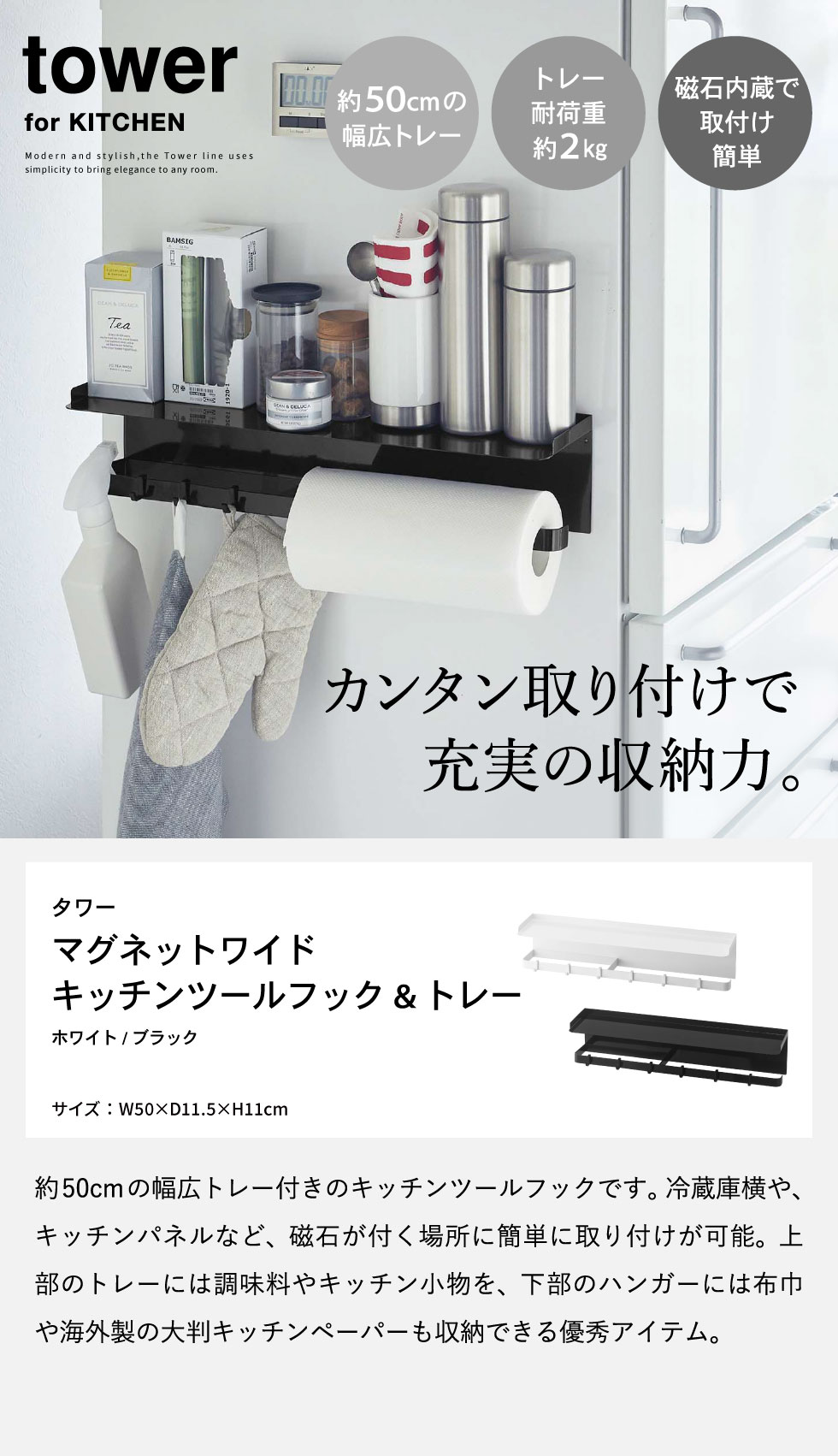 マグネットワイドキッチンツールフック&トレー タワー