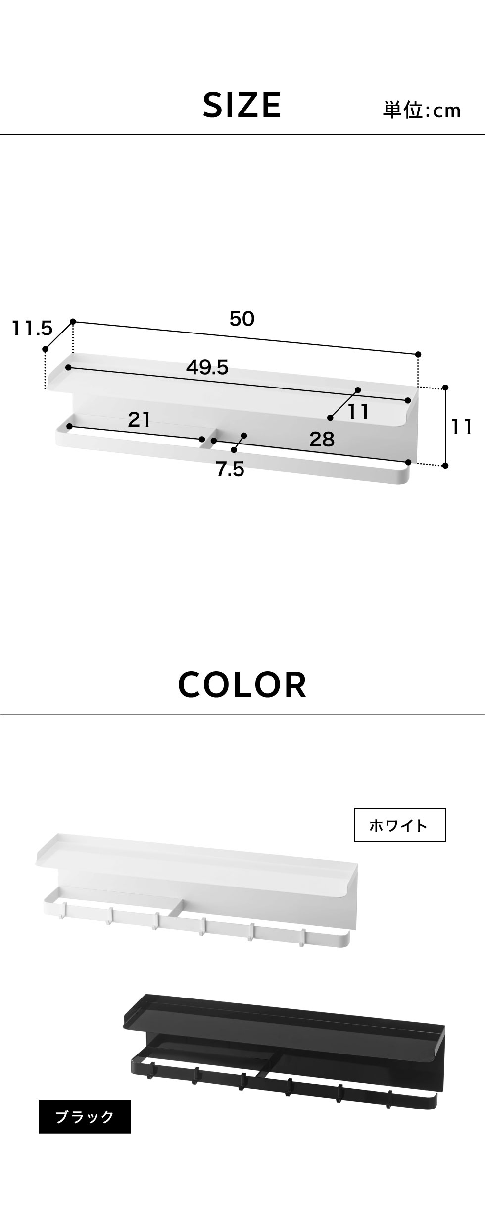 ●内寸サイズ: トレー:約W49.5×D11cm バー:約W21×D7.5cm ハンガー:約W28×D2.5cm