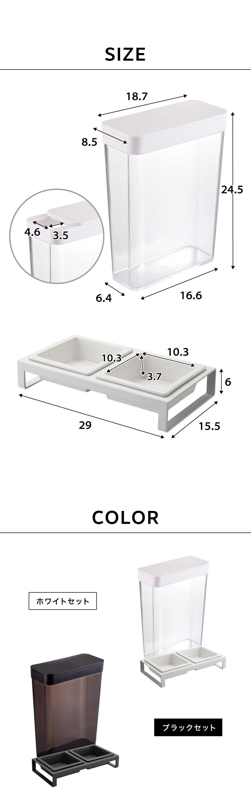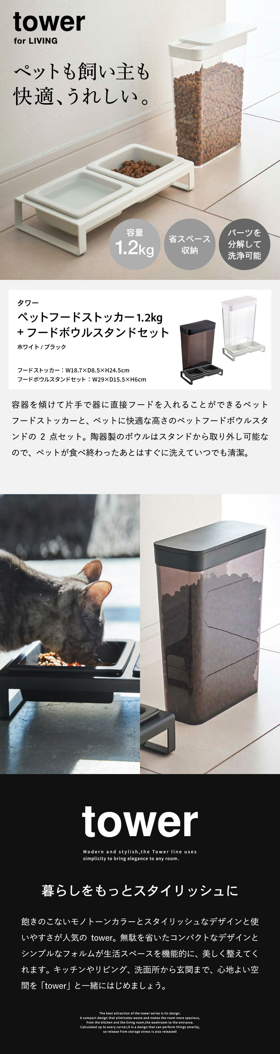 ペットフードストッカー 1.2kg & ペットフードボウルスタンドセット タワー
