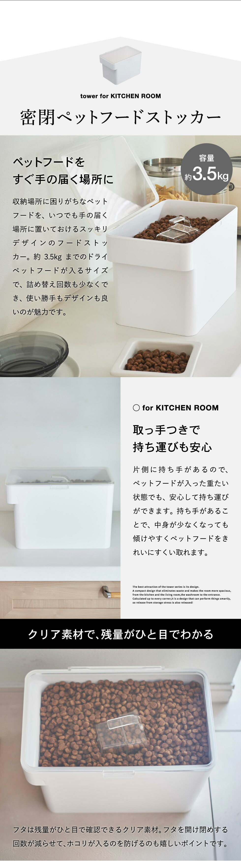 【密閉ペットフードストッカー タワー 3.5kg 計量カップ付】