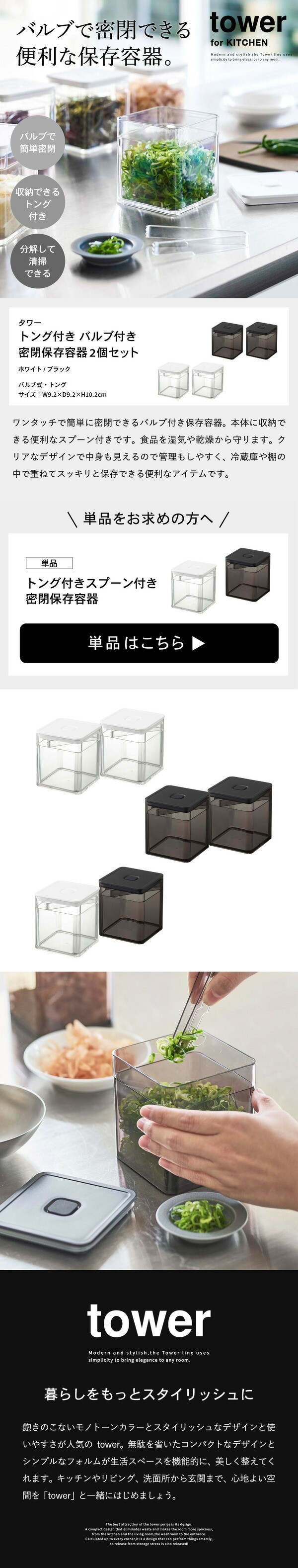トング付き バルブ付き密閉保存容器 タワー 2個セット