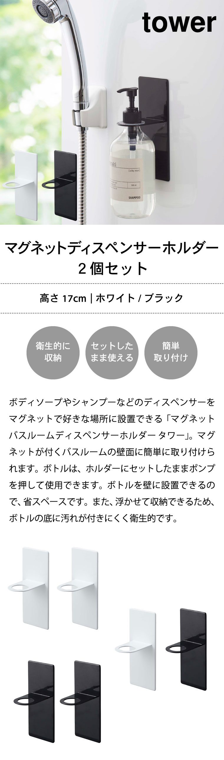 マグネットバスルームディスペンサーホルダー タワー 2個セット
