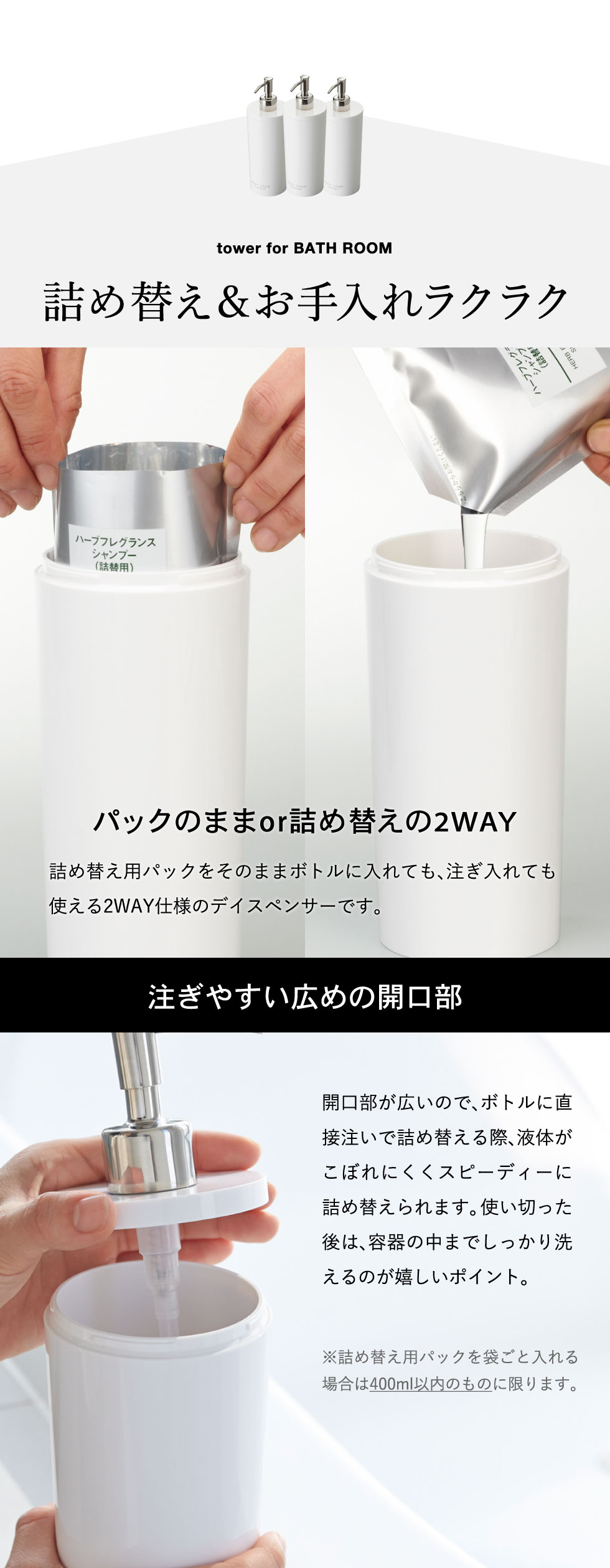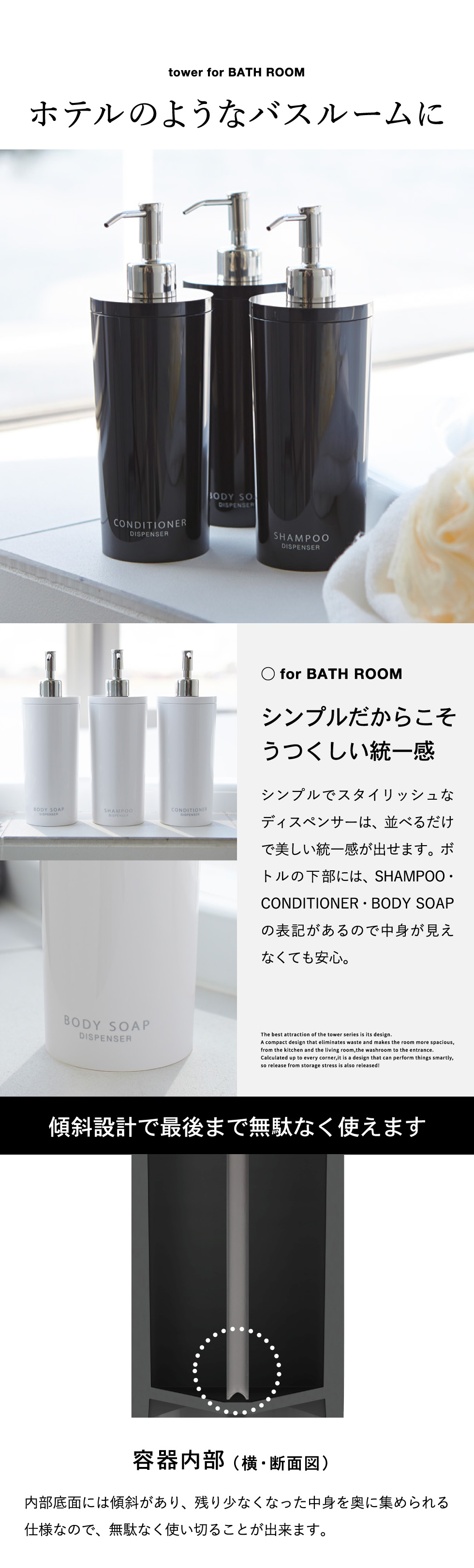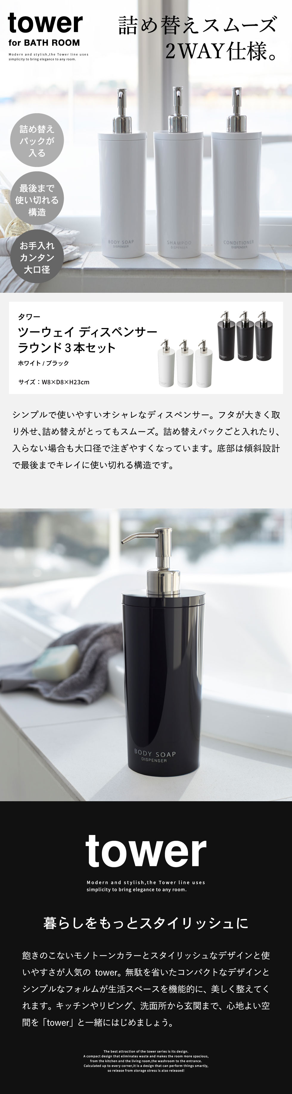 ツーウェイディスペンサー タワー ラウンド 3個セット(シャンプー・コンディショナー・ボディソープ )