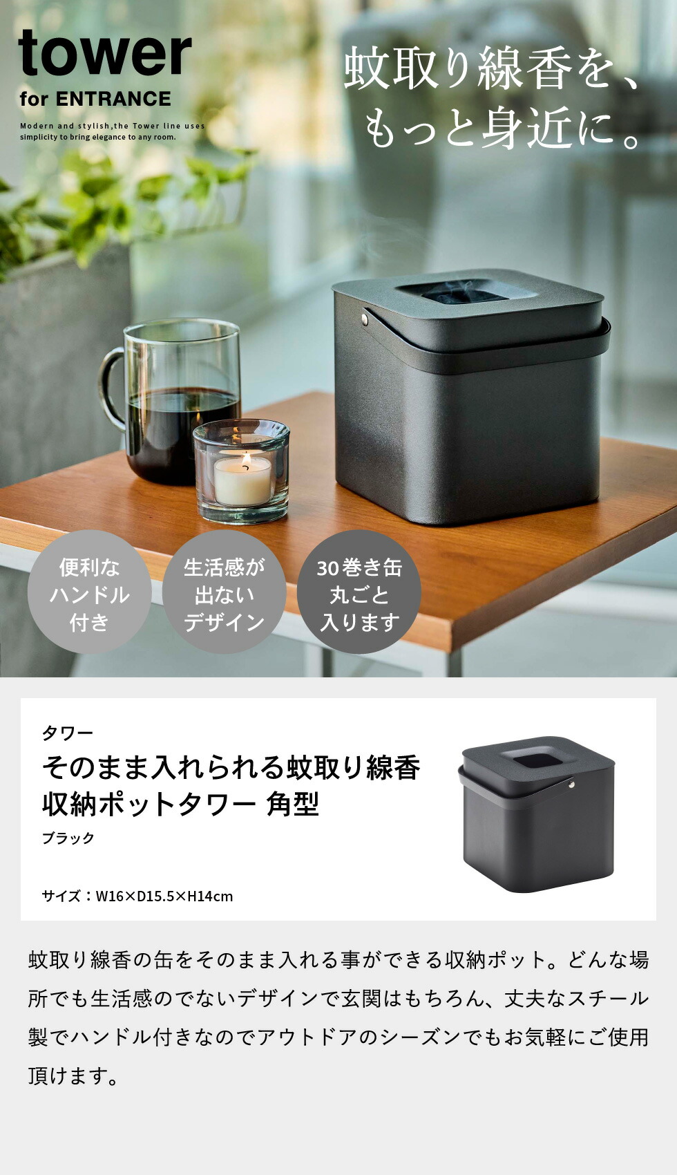 そのまま入れられる蚊取り線香収納ポット タワー 角型 山崎実業 tower ブラック 5752 タワーシリーズ