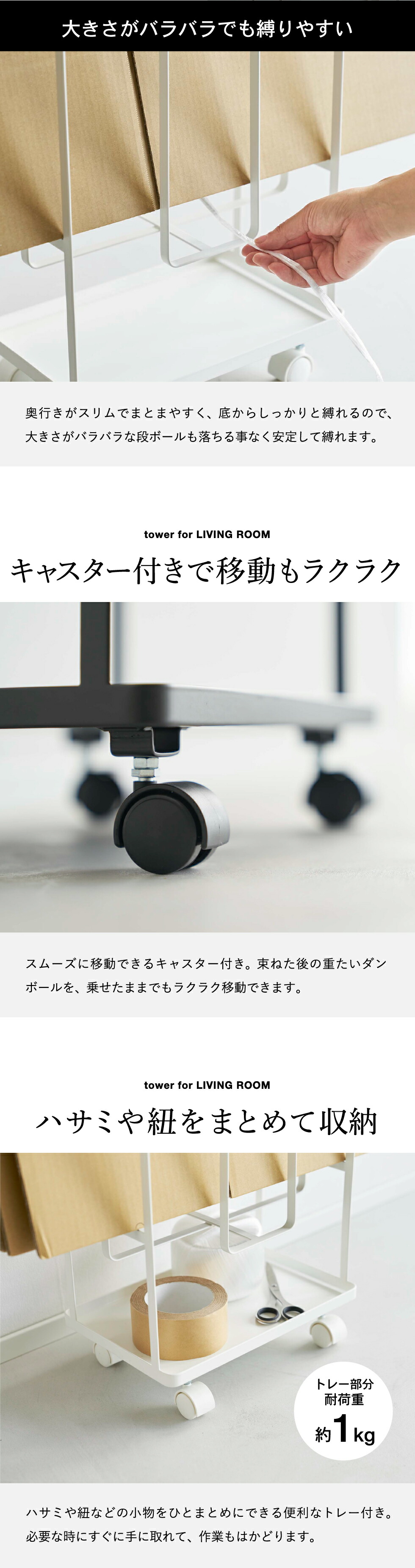 ●耐荷重:ダンボール収納部:約5kg トレー:約1kg