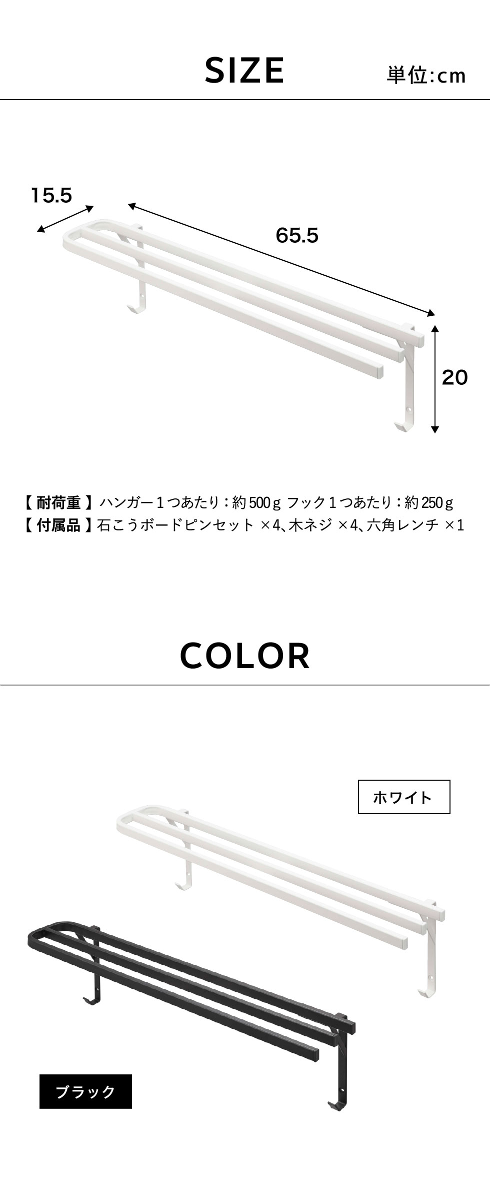 ●耐荷重:ハンガー1つあたり : 約500g フック1つあたり : 約250g