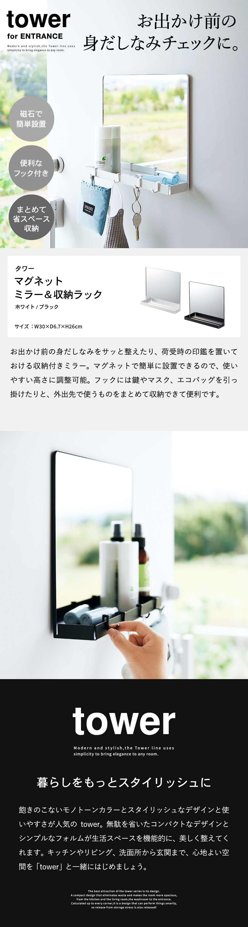 マグネットミラー&収納ラック タワー