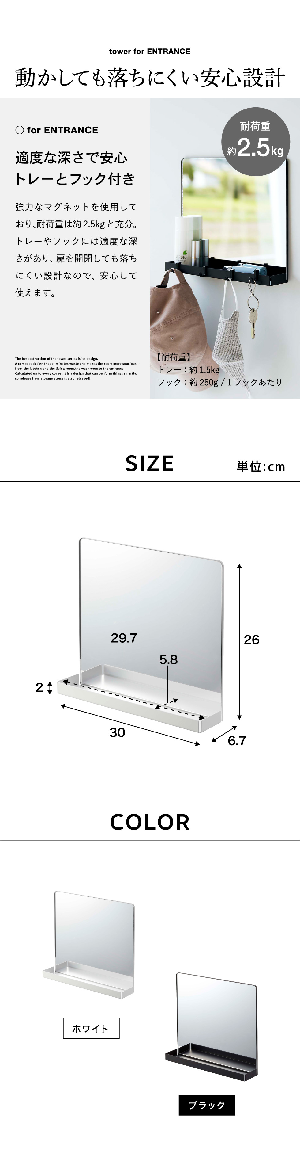 ●素材・材質: 本体:スチール(粉体塗装) ミラー:3mm厚ガラス マグネット 滑り止め:シリコーン