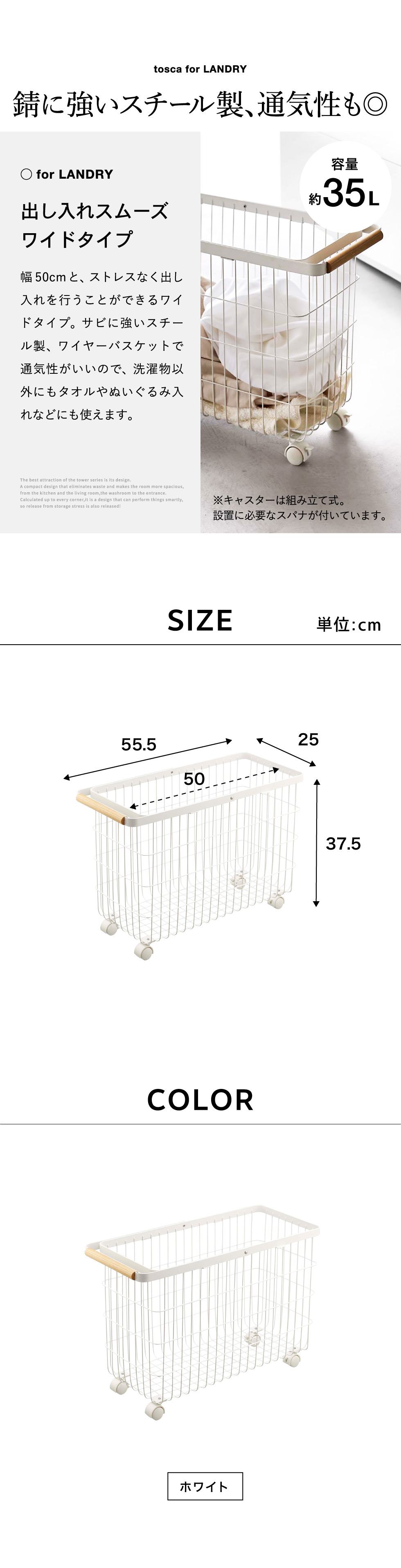 ランドリーバスケット トスカ キャスター付き ワイド&ロー