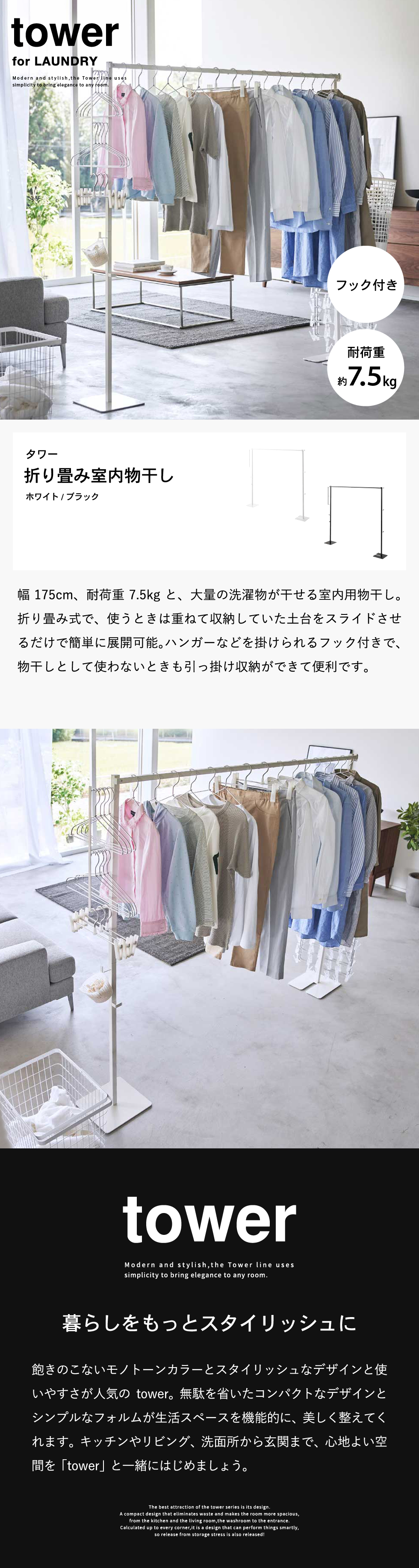 折り畳み室内物干し タワー 山崎実業 tower 6619 6620 ホワイト ブラック