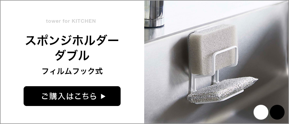 マグネットで浮かせて収納できるスポンジホルダー。普段よく使うスポンジを2つ縦に省スペース収納できます。下段のスポンジを置く部分は手前に向かって上向きになっており、取り出しやすい仕様。浮かせているのでお掃除もスムーズ、キッチンを衛生的に保てます。