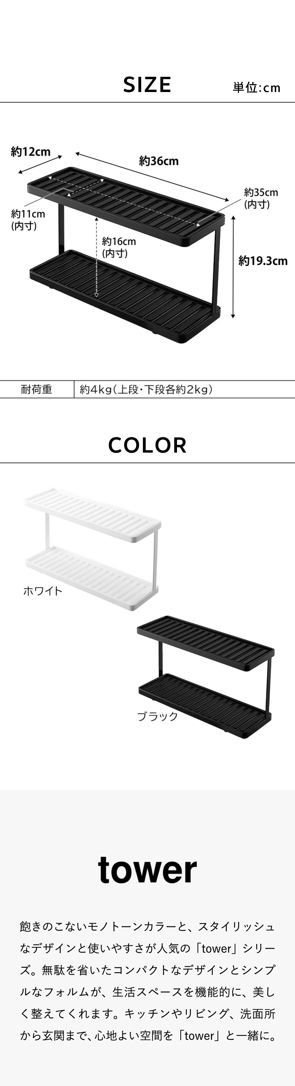 ホワイトとブラックを中心とした飽きのこないモノトーンカラーと、どんなインテリアにもスッと馴染むスタイリッシュなデザイン。そして、とことんシンプルながら、より豊かな暮らしを提案するアイデアがたくさん詰まった、使いやすいアイテムが人気です。無駄を省いたコンパクトなデザインと、シンプルなフォルムが生活スペースを機能的に、美しく整えてくれます。towerのアイテムをライン使いすれば、すっきりとした統一感が生まれ、お洒落でシックな雰囲気を演出します。キッチンやリビング、洗面所から玄関まで揃えたくなるtowerシリーズで、毎日の暮らしを彩る心地よい空間を。