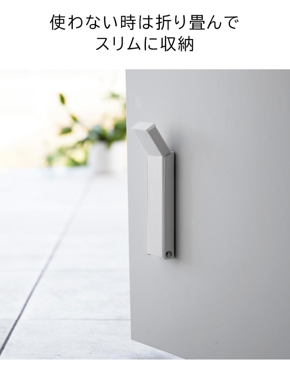 ストッパーの出し入れが片足で操作できるドアストッパーです。玄関ドアにマグネットで簡単に設置することができ、取り付けてすぐに使えます。使わない時は、折り畳んでスリムに収納できるから邪魔になりません。屈んでてを使うことなく、片足で出し入れができるので、両手が塞がっていても動作がスムーズでラクチンです。