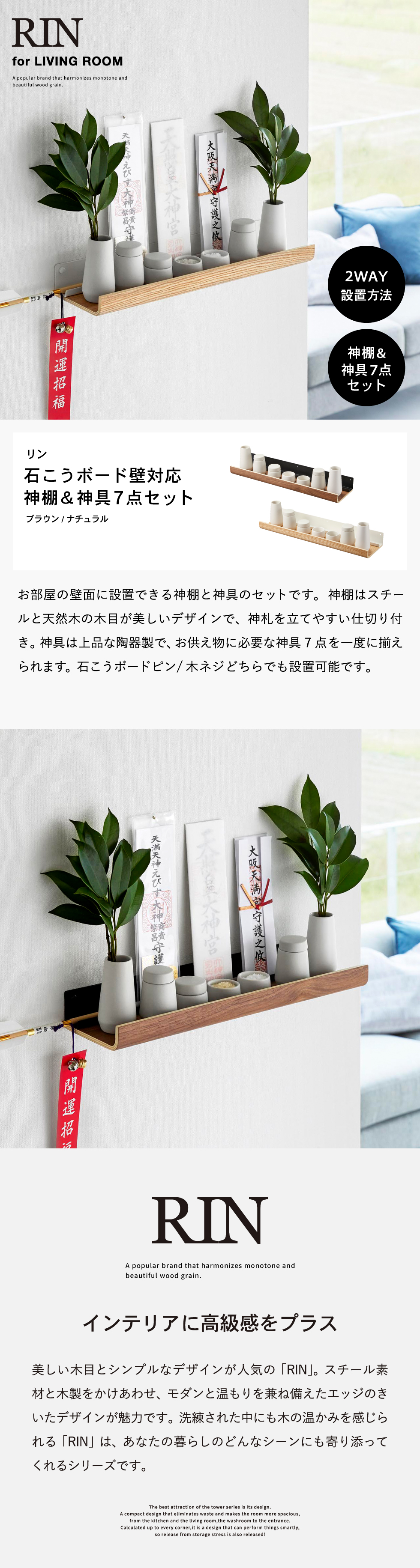RIN 石こうボード壁対応神棚 リン 神具セット 山崎実業 3658 3659 ブラウン ナチュラル