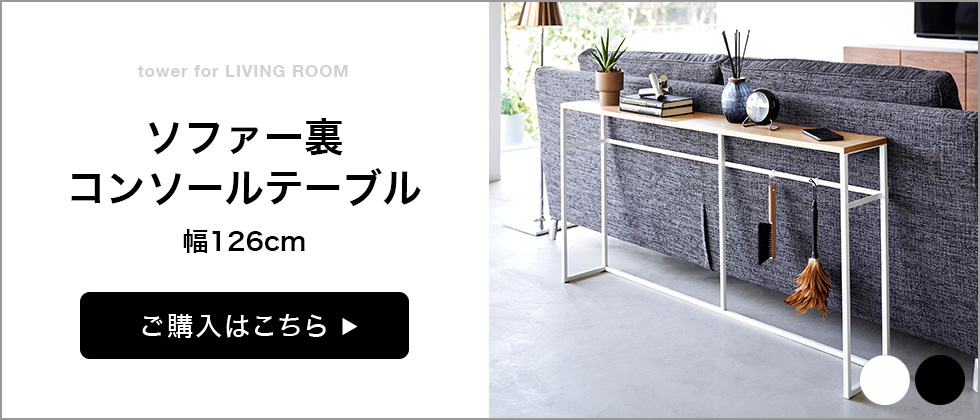 ソファー裏のデッドスペースを有効活用できるコンソールテーブル。奥行き20.5cmとスリムながらも、幅126cmとワイドな形状。観葉植物や小物を置いて飾り棚にしたり、棚には落ちやすいモノを置いたりと便利に使えます。玄関や廊下に置いても◎。