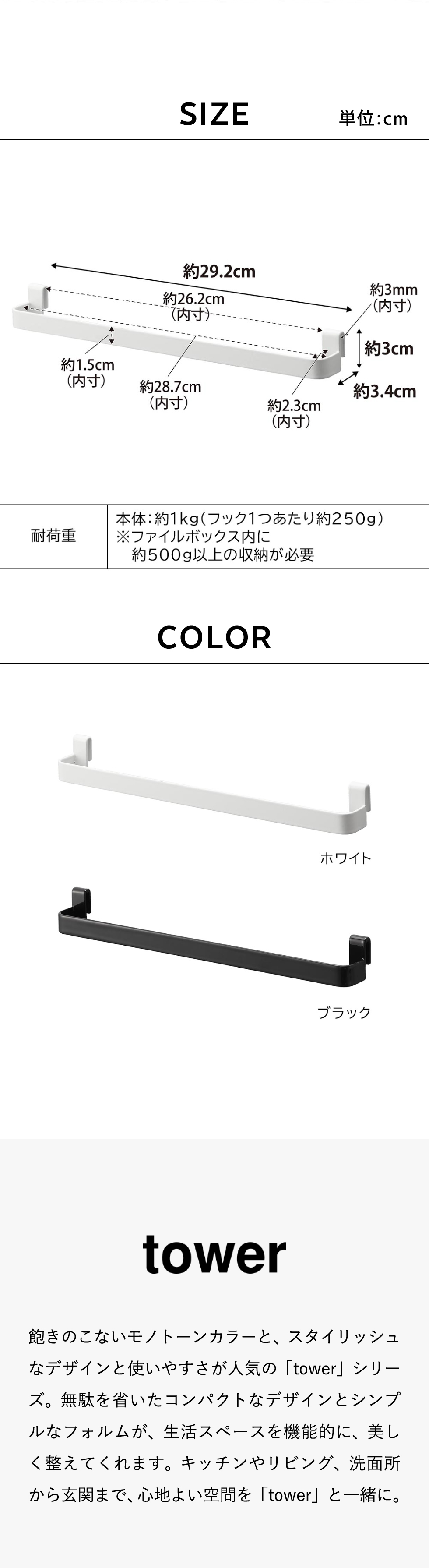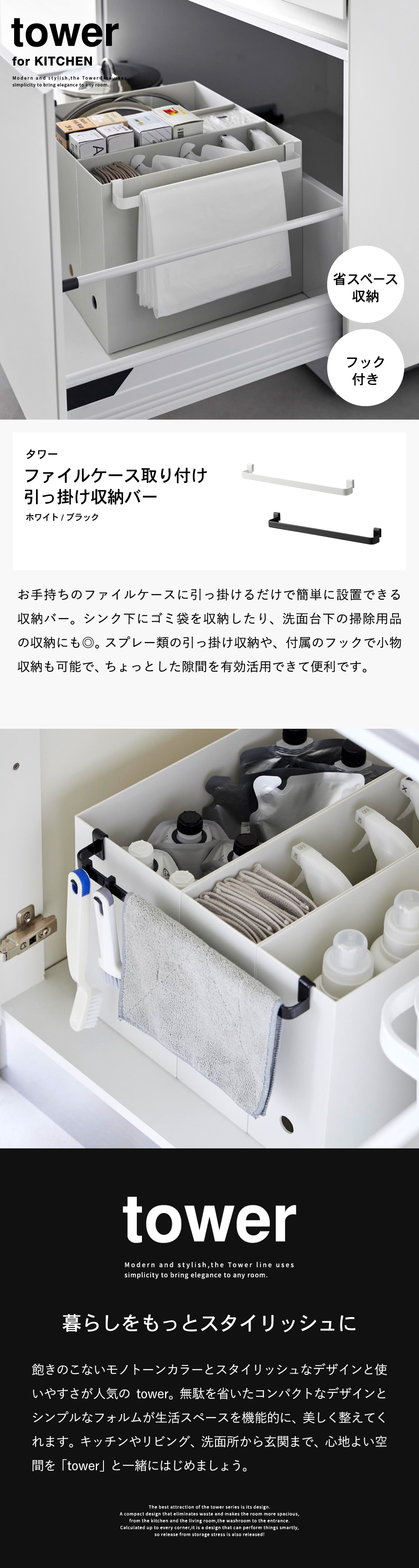 ファイルケース取り付け引っ掛け収納バー タワー 山崎実業 tower キッチン 2048 2049 ホワイト ブラック
