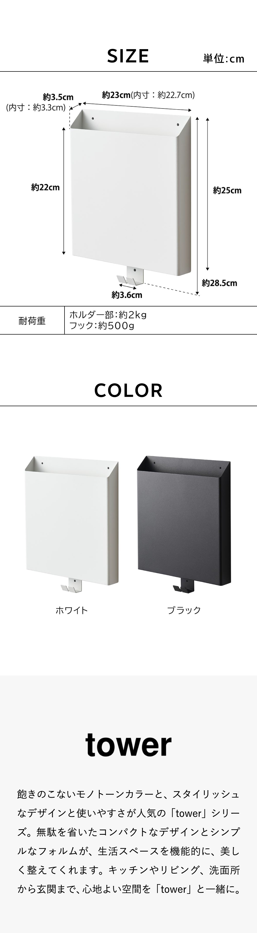 tower 石こうボード壁対応プリント収納ホルダー タワー 山崎実業 送料無料 2020 2021 ホワイト ブラック / 書類 プリントケース 収納ケース 収納ポケット タブレット 充電 整理 ファイルボックス レターケース