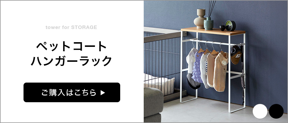 ペット用の小さなハンガーが掛けやすく、取り出しやすいペット用コートハンガーラック 胴長犬や大型犬の洋服が収まるトールサイズ ベビー服を掛けても◎ タワーシリーズ yamazaki