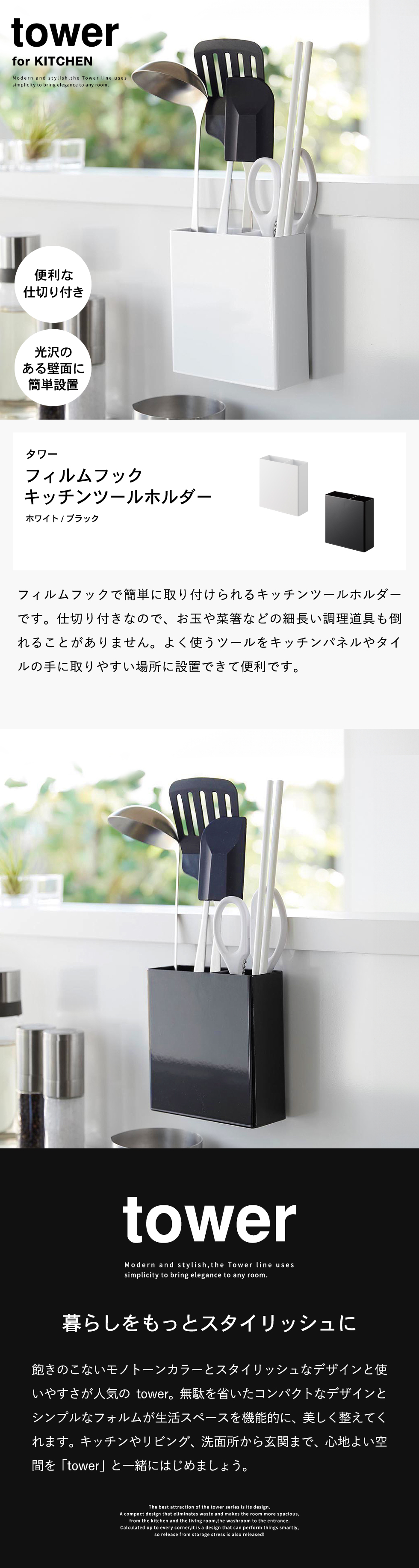 山崎実業 tower フィルムフックキッチンツールホルダー タワー キッチン 2157 2158 ホワイト ブラック