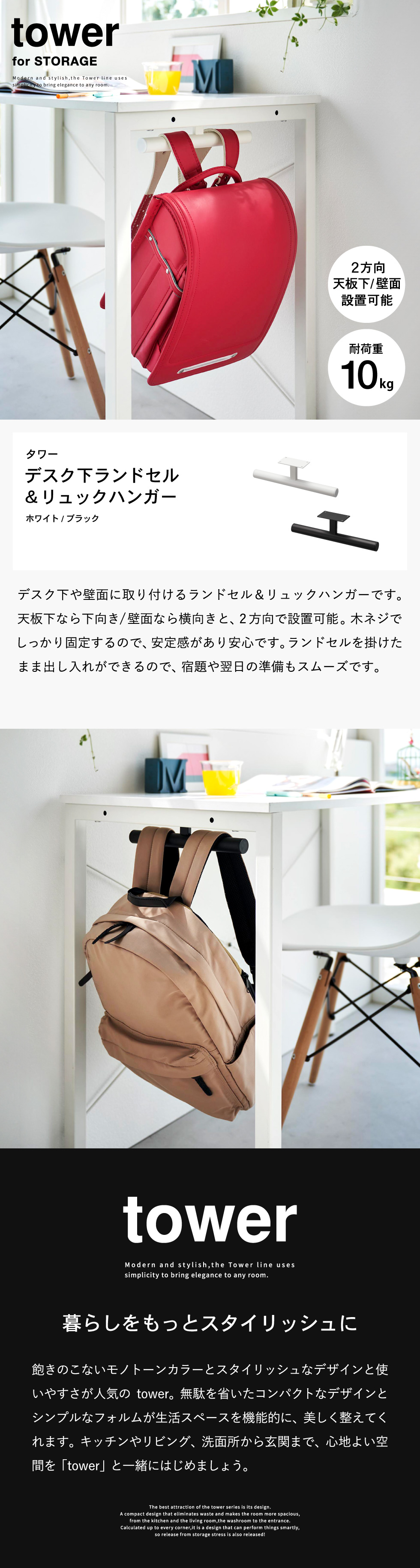 | デスク下ランドセル&リュックハンガー タワー |