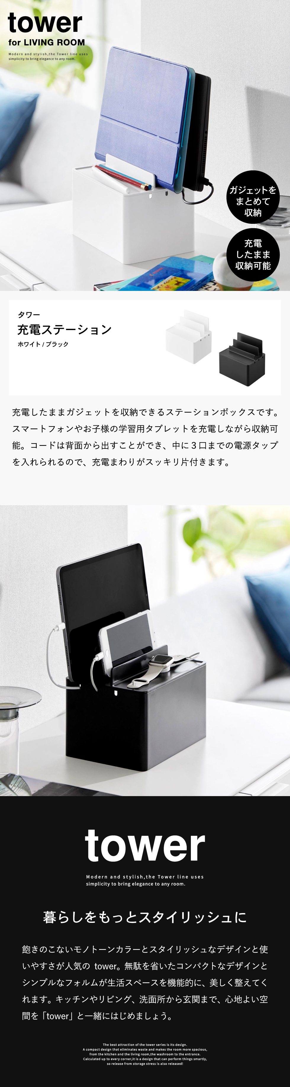 山崎実業 tower 充電ステーション タワー 収納 送料無料 2194 2195 ホワイト ブラック