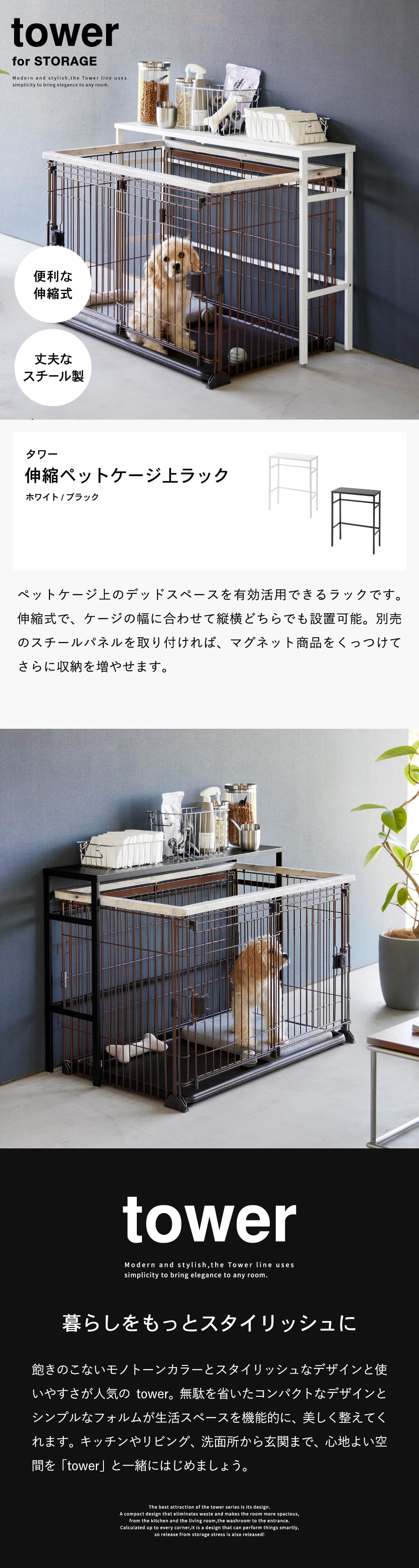 山崎実業 tower 伸縮ペットケージ上ラック タワー 4086 4087 送料無料 ホワイト ブラック