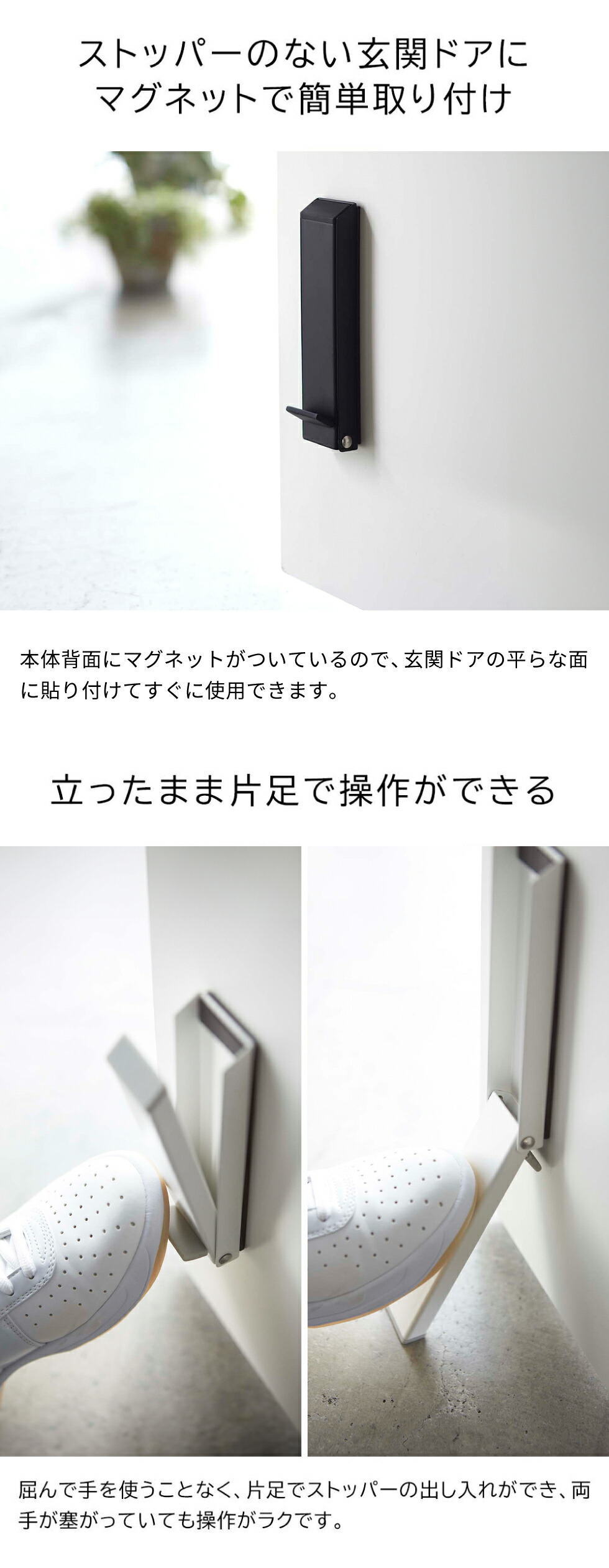 スチール製ドアにマグネットでピタッ!片足でサッとドアを固定できる玄関ドアストッパー 山崎実業 マグネット折り畳みドアストッパー スマート ドアストッパー 玄関