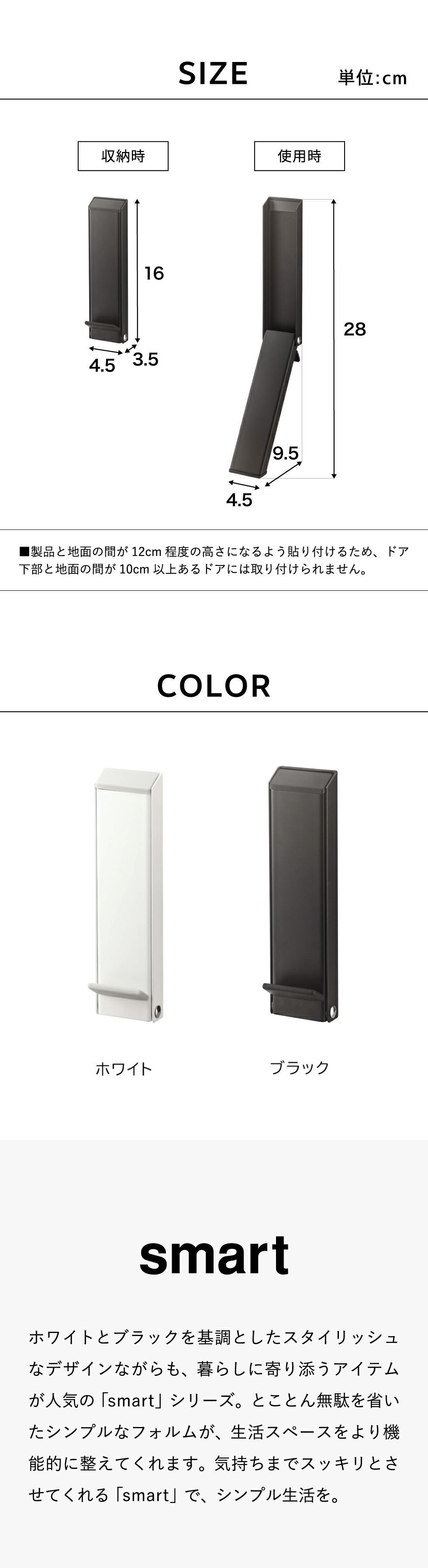 [ マグネット折り畳みドアストッパー スマート ] 山崎実業 公式 smart マグネット 2486 2487 ホワイト ブラック / ドアストッパー マグネット 玄関 玄関扉 玄関ドア ストッパー鉄製ドア 磁石 片足 折りたたみ