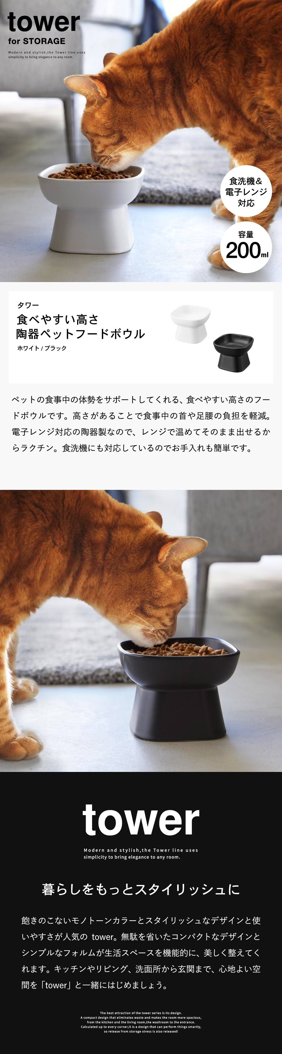 | 食べやすい高さ陶器ペットフードボウル タワー |