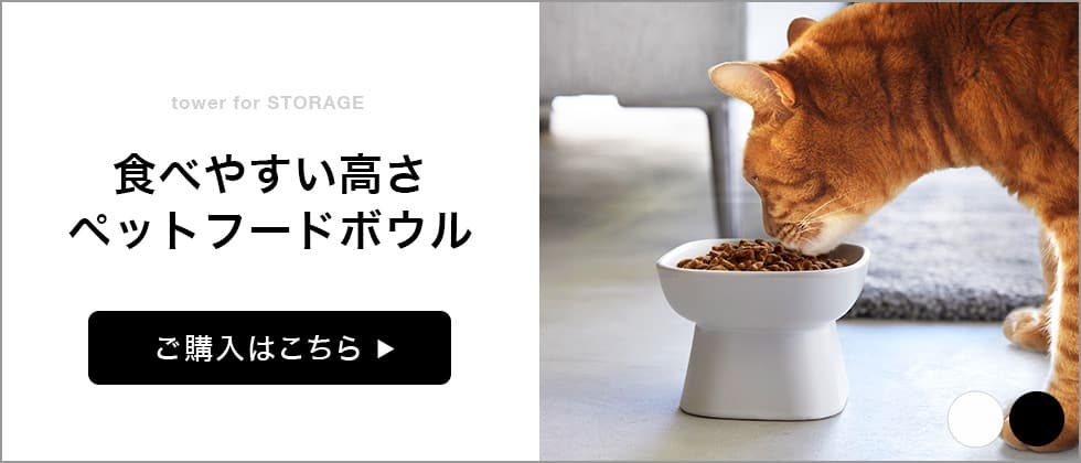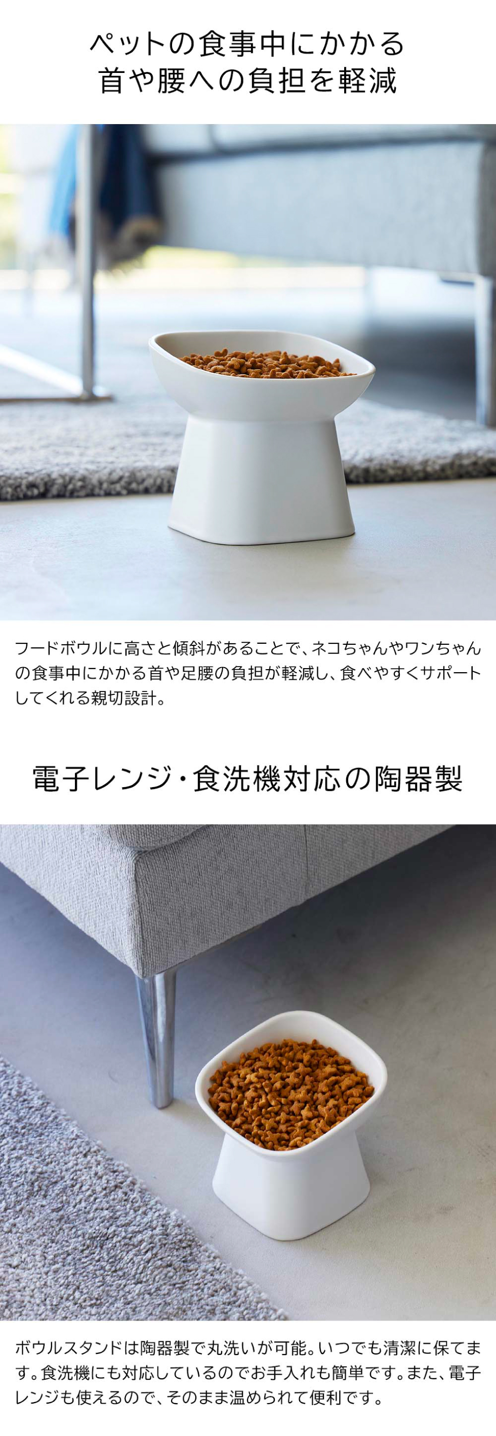 大切なペットの食事中の首や足腰の負担を軽減。食べやすくサポートしてくれる高さと、傾斜付きのフードボウル。電子レンジ、食洗機対応の陶器製。タワーシリーズ yamazaki