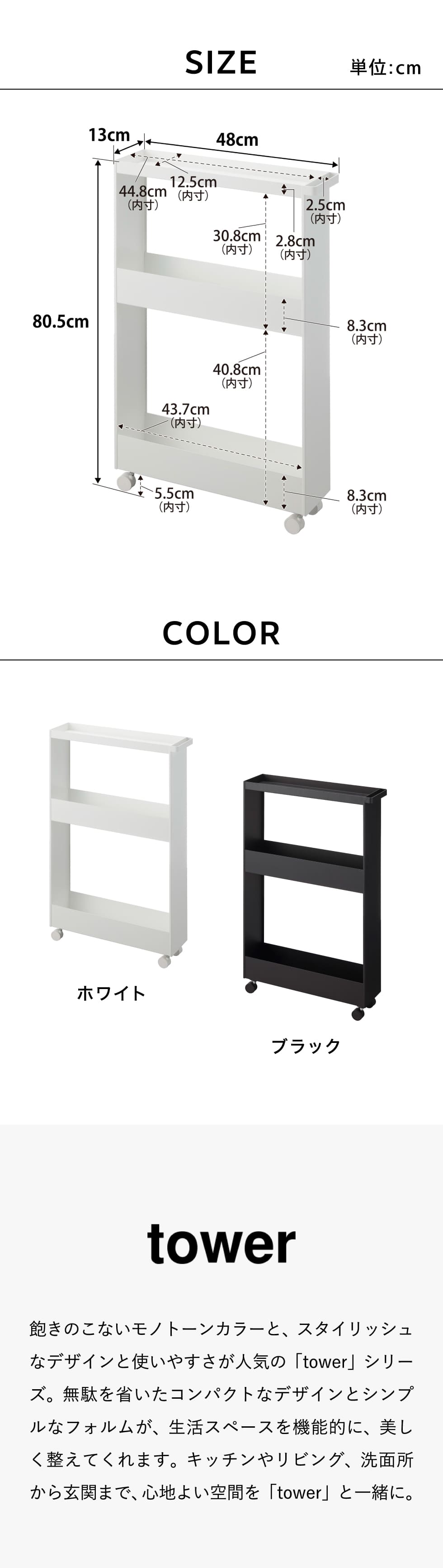 商品サイズ W13×D48×H80.5cm(キャスター含む) |