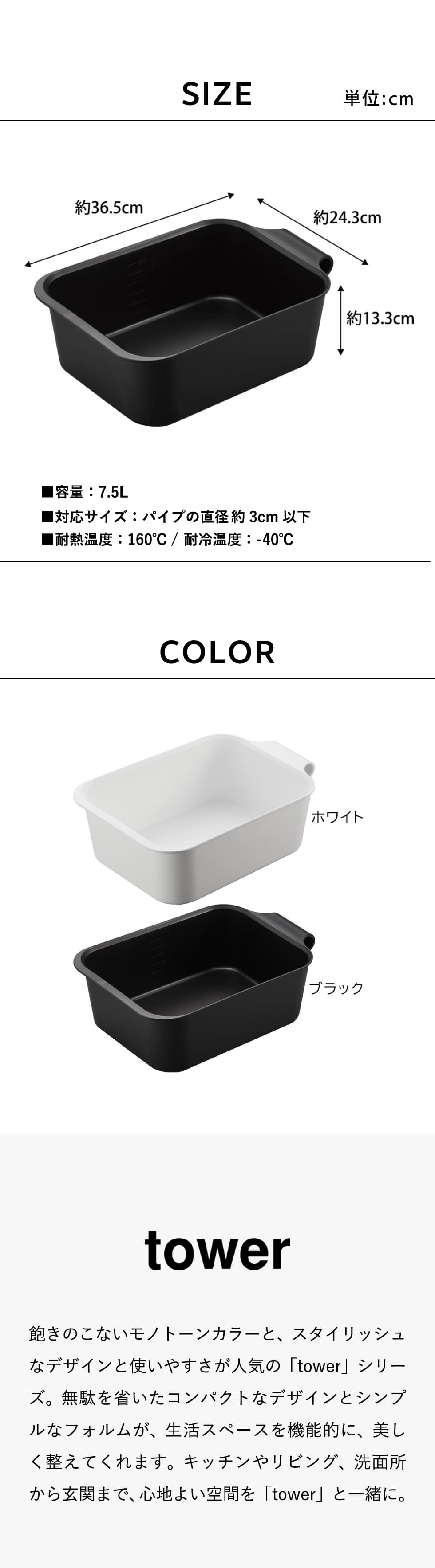 ホワイトとブラックを中心とした飽きのこないモノトーンカラーと、どんなインテリアにもスッと馴染むスタイリッシュなデザイン。そして、とことんシンプルながら、より豊かな暮らしを提案するアイデアがたくさん詰まった、使いやすいアイテムが人気です。無駄を省いたコンパクトなデザインと、シンプルなフォルムが生活スペースを機能的に、美しく整えてくれます。towerのアイテムをライン使いすれば、すっきりとした統一感が生まれ、お洒落でシックな雰囲気を演出します。キッチンやリビング、洗面所から玄関まで揃えたくなるtowerシリーズで、毎日の暮らしを彩る心地よい空間を。