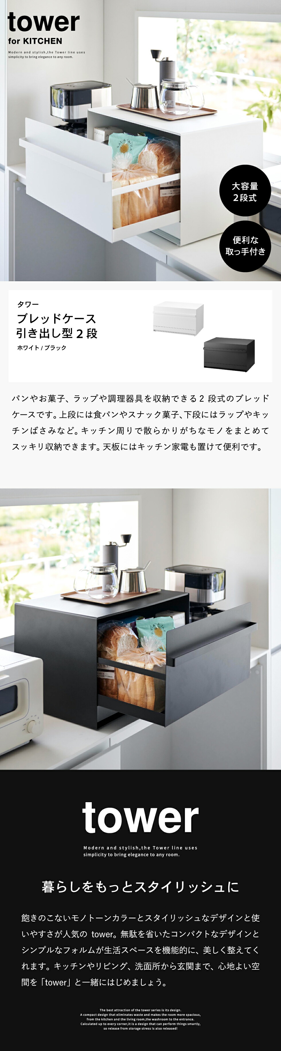 ![[ ブレッドケース タワー 引き出し型 2段 ] 山崎実業 公式 tower 1857 1858 白 黒 / ブレッドケース 引き出し 隠せる パンケース ブレッドビン 食パンパン 収納 トースターラック キッチン](https://www.bellevie-inc.co.jp/cabinet/product/tower10/10519-p-1.jpg)