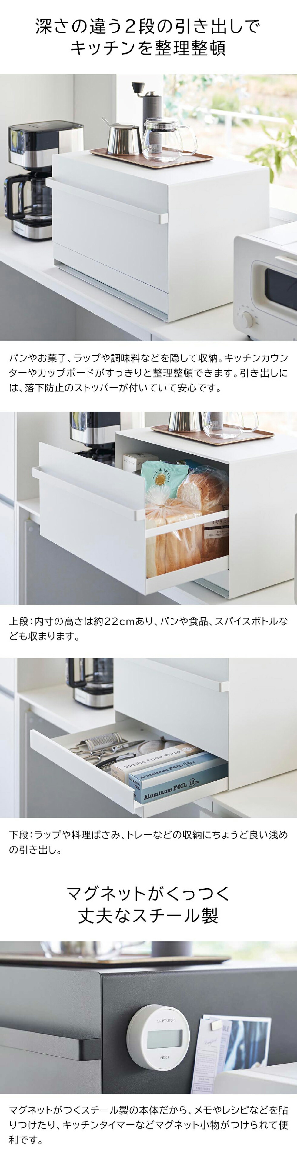 ![[ ブレッドケース タワー 引き出し型 2段 ] 山崎実業 公式 tower 1857 1858 白 黒 / ブレッドケース 引き出し 隠せる パンケース ブレッドビン 食パンパン 収納 トースターラック キッチン](https://www.bellevie-inc.co.jp/cabinet/product/tower10/10519-p-5.jpg)