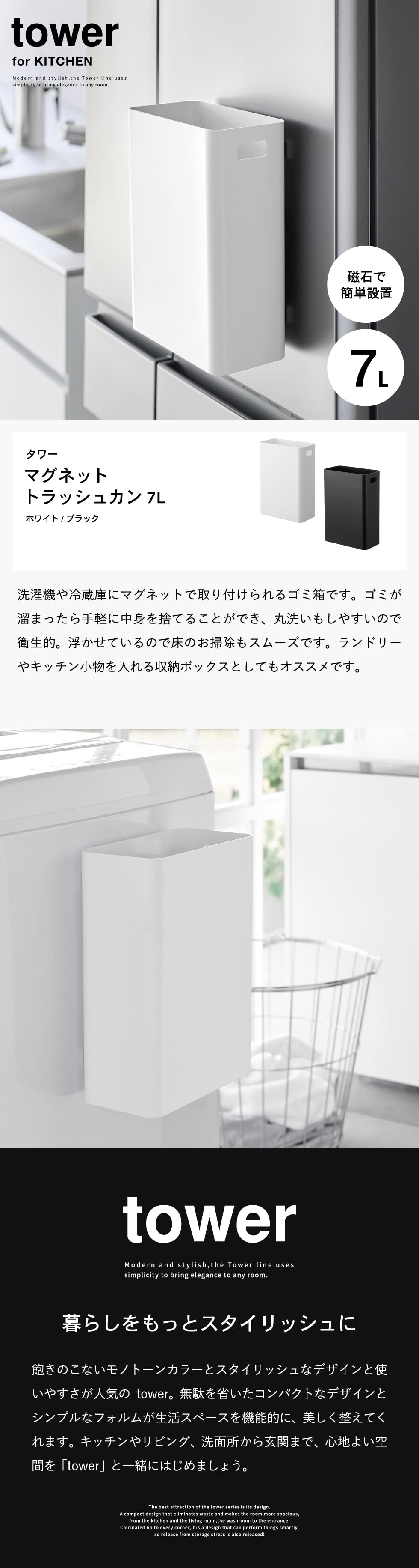 マグネットトラッシュカン タワー 7L 山崎実業 公式 tower ゴミ箱 1632 1633 ホワイト ブラック 送料無料