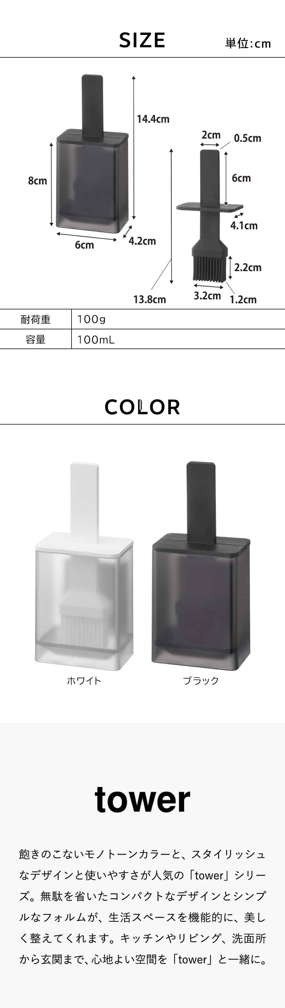 商品サイズ W6×D4.2×H14.4cm 容器:W6×D4.2×H8cm ブラシ:W6×D4.1×H13.8cm |