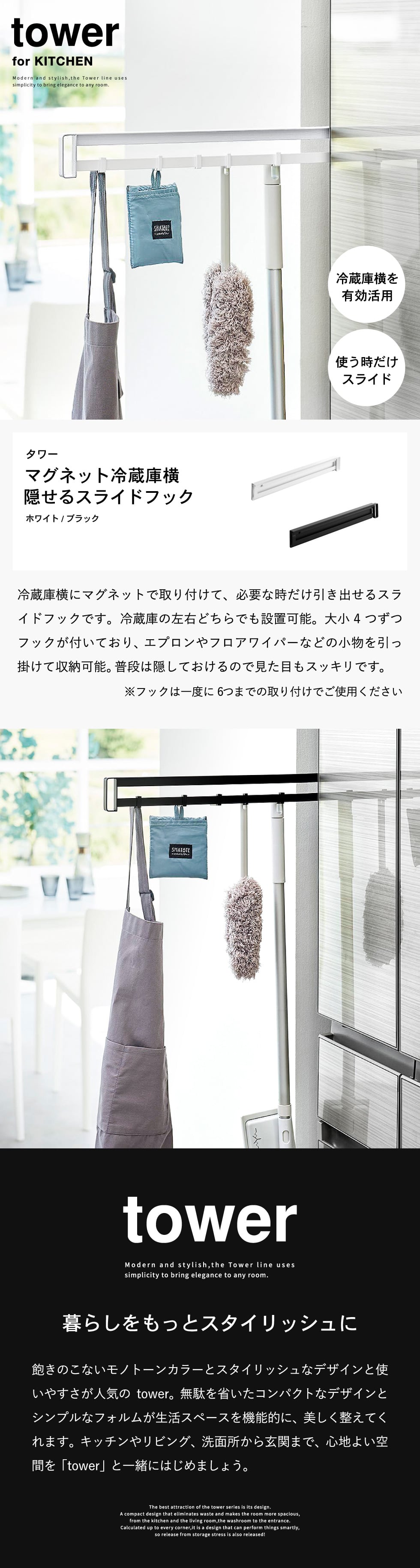 | マグネット冷蔵庫横隠せるスライドフック タワー |