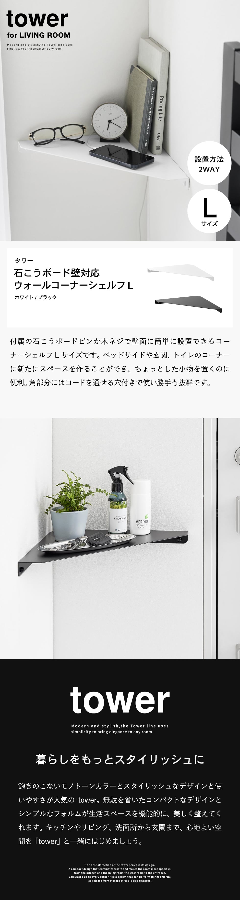 | ウォールコーナーシェルフ タワー L 石こうボード壁対応 |